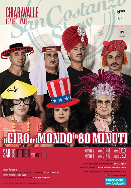 CHIARAVALLE (AN) – Con le repliche autunnali si conclude la tournée regionale de Il Giro del Mondo in 80 Minuti, spettacolo comico del San Costanzo Show dedicato al tema del viaggio.
