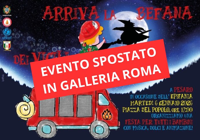Da piazza del Popolo, il tradizionale evento della Befana previsto per domani, si sposta all’interno di Galleria Roma, da poco riqualificata. Grazie a Pesaro Village, con la collaborazione del Comando Provinciale dei Vigili del Fuoco di Pesaro e Urbino e dell’Associazione Nazionale dei Vigili del Fuoco, la Galleria – dalle ore 17 – si trasformerà in un vero e proprio villaggio della Befana, con scenografie, musica, animazione e tanti momenti dedicati ai più piccoli. Non mancheranno spettacoli e la tradizionale consegna delle calze e dei dolciumi, in un clima di festa e condivisione aperto a famiglie, bambini e cittadini di tutte le età.