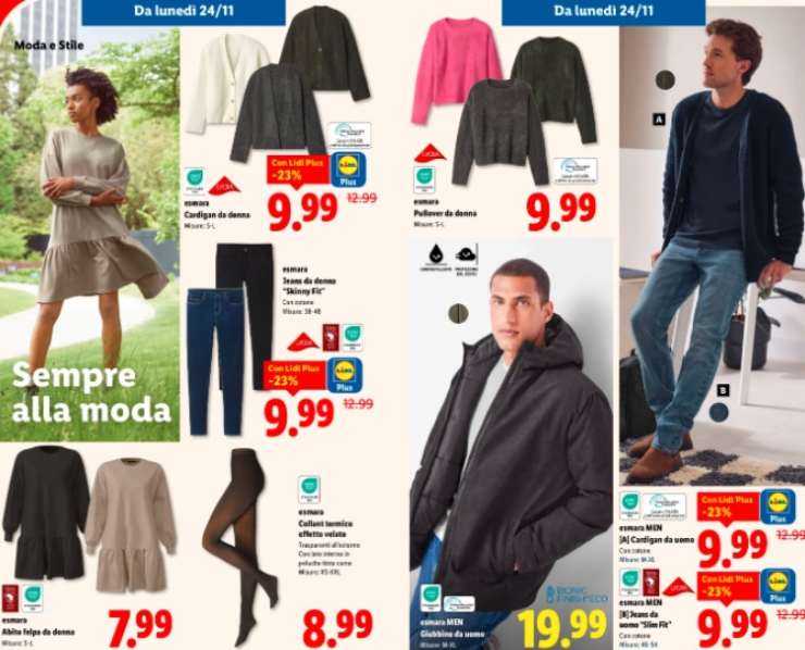 Se fino a qualche anno fa fare shopping di vestiti richiedeva grandi investimenti, oggi è possibile portare una ventata di novità al guardaroba anche con una manciata di euro. La possibilità arriva questa volta dal colosso dei supermercati Lidl. Nella settimana del Black Friday, il suo volantino si è arricchito di proposte super economiche puntate al comfort e allo stile per lui e per lei.