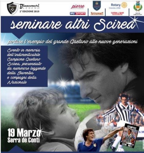 SERRA DE’ CONTI – Una giornata dedicata a Gaetano Scirea con una mostra per ricordare la sua figura e un dibattito sul tema “Seminare nuovi Scirea”: domani, 19 marzo, a Serra de’ Conti (Ancona) la 2a edizione di ‘Bianconeri Legend’ sarà dedicata all’ex libero della Juve e della Nazionale tragicamente scomparso in un incidente stradale in Polonia e vedrà la partecipazione della moglie Mariella e di tanti altri grandi campioni della storia bianconera, da Marco Tardelli e Claudio Gentile.
