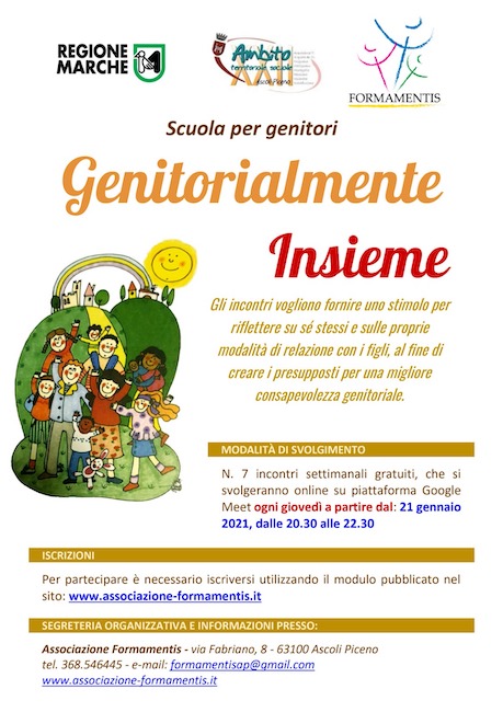 I corsi sono interamente gratuiti, potranno essere seguiti in modalità online, e saranno organizzati dalle associazioni SPAZIO IN FORMAZIONE, Pianeta Genitori, Lilt -Lega italiana lotta ai tumori Ascoli Piceno, Ass. Formamentis, Una famiglia per tutti onlus.