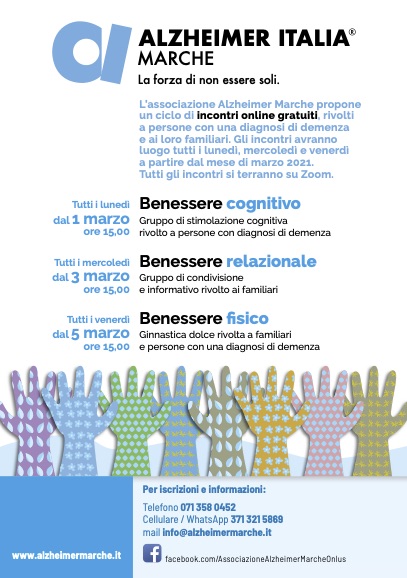 Per iscrizioni e informazioni: 071.-3580452; 3713215869 (cell e w.app); mail: info@alzaheimermarche.it