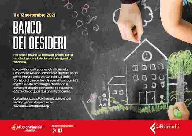 “Dopo questo lungo periodo in cui molti bambini e ragazzi che vivono in contesti difficili hanno rischiato di rimanere indietro nell’apprendimento anche per la mancanza del materiale necessario a seguire le lezioni, torniamo insieme a laFeltrinelli con il Banco dei Desideri. Vogliamo dare un contributo concreto e garantire a ogni studente l’opportunità di tornare sui banchi di scuola con tutto ciò che serve per affrontare il nuovo anno scolastico, con le stesse opportunità degli altri compagni.” Così, Sara Modena, Direttore Generale di Mission Bambini, racconta come nasce l’iniziativa.