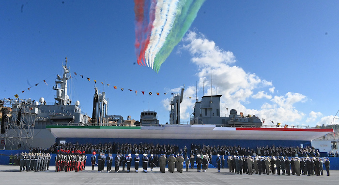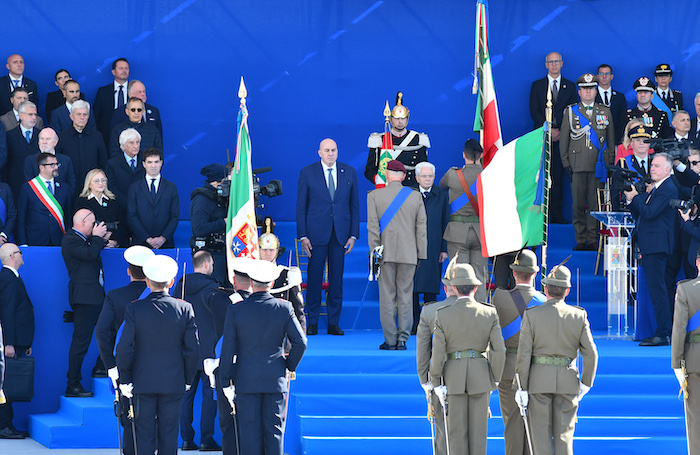 Nel Molo Clementino la cerimonia ufficiale per la Giornata dell’Unità Nazionale e delle Forze Armate intitolata significativamente ‘Difesa la forza che unisce’. Presenti Mattarella e Crosetto