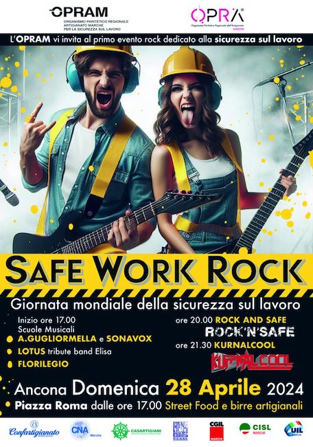 Anche la data è un simbolo: il 28 aprile ricorre la Giornata mondiale della sicurezza sul lavoro e l’Organismo paritetico regionale per il comparto dell’artigianato delle Marche (OPRAMarche), all’interno delle attività di promozione e diffusione della cultura della prevenzione in questo campo, ha organizzato il primo evento rock dedicato alla sicurezza sul lavoro: un grande evento al centro di Ancona, con il patrocinio del Comune e con la collaborazione di Rock ‘N’ Safe, il progetto nato con il fine di inserire in modo innovativo il tema della sicurezza nella cultura aziendale.