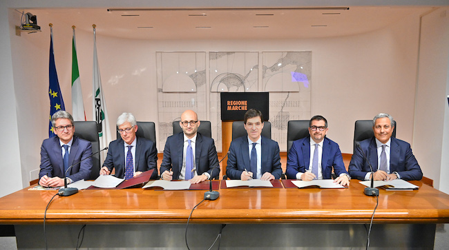 Alla firma erano presenti il presidente della Regione Marche Francesco Acquaroli, il provveditore interregionale alle OO.PP Toscana-Marche-Umbria Giovanni Salvia in rappresentanza del Ministero delle Infrastrutture e dei Trasporti, l’amministratore delegato e direttore generale Rete Ferroviaria Italiana S.p.A. Gianpiero Strisciuglio, il presidente dell’ Autorità di Sistema Portuale del Mare Adriatico Centrale Vincenzo Garofalo, l’assessore alle Infrastrutture della Regione Marche Francesco Baldelli;il sindaco del Comune di Ancona Daniele Silvetti.
