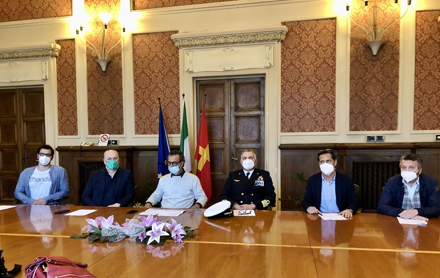 Tommaso Mosca, associazione 2Hands, Paolo Baldoni CEO Garbage Group, Michele Polenta assessore all’ambiente del Comune di Ancona, Andrea Vitali Capitano di Vascello e vice comandante della capitaneria di Porto di Ancona, prof. Francesco Regoli Direttore DISVA Università Politecnica delle Marche, Roberto Rubegni Amministratore delegato di Anconambiente SpA.