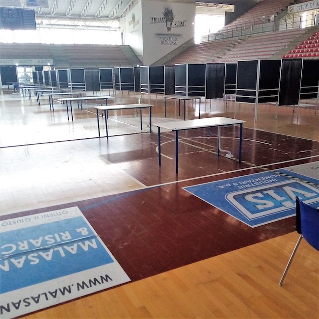 Predisposti anche i percorsi per l’accesso alla struttura: si entra dal cancello 5 e sarà possibile parcheggiare sopra il terrazzo; poi si accede al grande tunnel, diviso tra entrata e uscita con percorsi dedicati. All’ingresso, dove ci sarà la registrazione, sarà presente personale della Protezione civile.