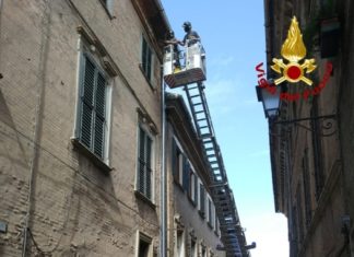 OSTRA (ANCONA) - I vigili del fuoco, allertati da alcuni passanti, sono intervenuti a Ostra di Ancona in Corso Mazzini per parti di intonaco cadute da un edificio sulla pubblica via.