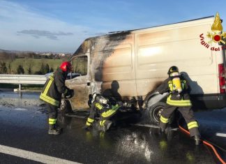 Furgone in fiamme sull’A14, intervengono i Vigili del Fuoco