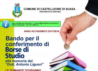 CASTELLEONE DI SUASA (AN) - L’Amministrazione Comunale di Castelleone di Suasa, anche quest’anno, ha pubblicato il Bando per il conferimento delle Borse di Studio, alla memoria del “Dott. Antonio Liguori”, per gli studenti più meritevoli, residenti nel Comune, per l’anno accademico 2017/2018.