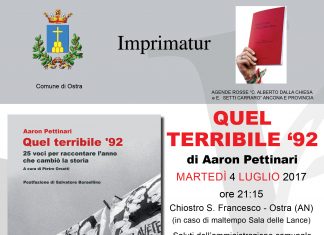 OSTRA (AN) - Martedì 4 Luglio alle ore 21.15, presso il Chiostro di S. Francesco (o in caso di maltempo Sala delle Lance) a Ostra, si terrà la presentazione del libro "Quel terribile '92" di Aaron Pettinari.