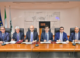 ANCONA - Sottoscritta ieri a Palazzo Raffaello la rimodulazione dell’Accordo di Programma 2017 inerente l’intervento localizzato nel “Comune di Ancona Lungomare Nord - realizzazione della scogliera di protezione della linea ferroviaria Bologna - Lecce, interramento con gli escavi dei fondali marini, rettifica e velocizzazione della linea ferroviaria”.