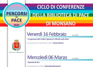MONSANO - Nuovo ciclo di conferenze alla Biblioteca di Pace di Monsano che anche quest’anno propone i suoi “Percorsi di pace”. Tanti i temi di attualità: dalle guerre dimenticate, al ruolo della donna nella società, fino alla...