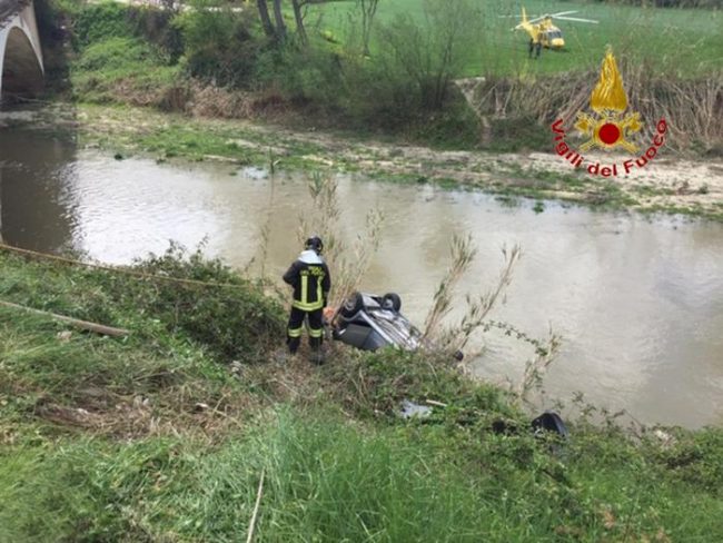 TREIA (MACERATA) – Una Fiat Punto con due anziani di Pollenza a bordo – marito di 87 anni e moglie di 83 – ha urtato di striscio un camion sulla Sp 53 a Passo di Treia e poi è finita nel fiume Potenza, ribaltandosi. Fortunatamente le conseguenze per i due feriti non sarebbero gravi anche se, per la dinamica dell’incidente, sono stati trasferiti in eliambulanza agli Ospedali Riuniti di Ancona. L’autista del mezzo pesante e un altro automobilista hanno estratto l’87enne dall’abitacolo dell’auto invasa dall’acqua per oltre un metro d’altezza.