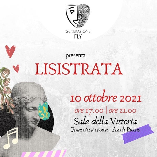 ASCOLI PICENO – L’Associazione Generazione Fly, in collaborazione con la Fly Communications e con il comune di Ascoli Piceno, presenta Lisistrata, tratta dalla commedia greca di Aristofane.Domenica 10 ottobre, in un doppio spettacolo alle 17.00 e alle 21.00, presso la Sala della Vittoria nella Pinacoteca Civica, andrà in scena la forza delle donne che, per far cessare la guerra, decideranno di rinunciare ai piaceri della carne, costringendo gli uomini a fare la pace.