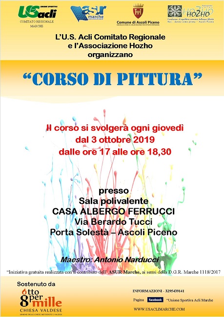 ASCOLI – Dal 3 ottobre, presso la sala polivalente della Casa albergo Ferrucci in via Tucci, prenderà il via un corso gratuito di pittura tenuto dal maestro Antonio Narducci. L’iniziativa si svolgerà ogni giovedì dalle ore 17 alle ore 18.30.