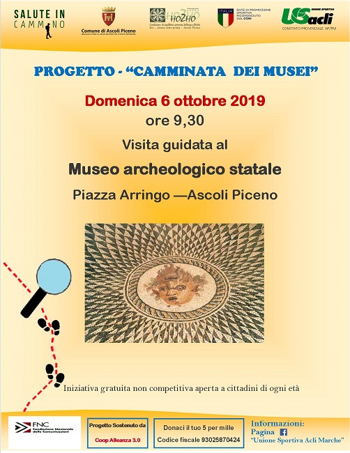 ASCOLI – Domenica 6 ottobre, con partenza da Piazza Arringo alle 9,30 in Ascoli Piceno, torna la “Camminata dei musei” che avrà come destinazione il Museo archeologico.