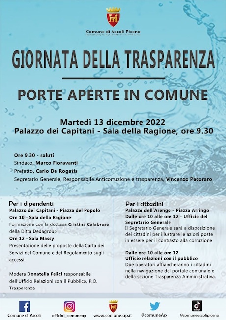 ASCOLI PICENO – Torna anche quest’anno l’appuntamento con la Giornata della Trasparenza amministrativa.