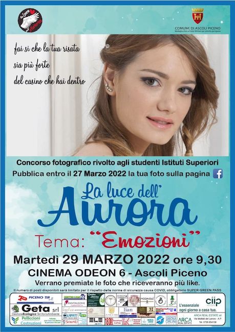 ASCOLI PICENO – Dopo uno stop di due anni a causa del Covid, torna il concorso fotografico “La luce dell’Aurora” per ricordare la giovane ascolana Aurora Stella, scomparsa nel 2016 a pochi giorni dal suo diciannovesimo compleanno. Il tema di questa edizione sarà “Emozioni” e verranno premiate le due foto, pubblicate sulla pagina Facebook “La luce dell’Aurora”, che riceveranno più like. Altri due premi della critica verranno assegnati per il 3° e 4° posto. Le foto andranno pubblicate entro domenica 27 marzo, mentre la premiazione si svolgerà martedì 29 marzo al cinema Odeon alle ore 9,30.