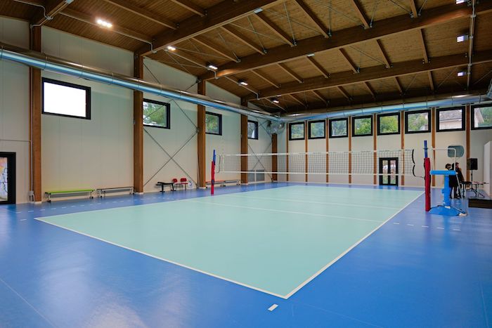 Al suo interno è stato realizzato un campo da pallavolo omologato per la Serie B, una tribuna ospiti da 95 posti e uno spazio servizi per il pubblico. Con il secondo lotto funzionale, che prenderà il via entro la fine di novembre, saranno completate le aree servizi, attraverso un ulteriore finanziamento di 185.000 euro comunali e le economie di gara autorizzate dalla Presidenza del Consiglio dei Ministri – Dipartimento dello Sport.