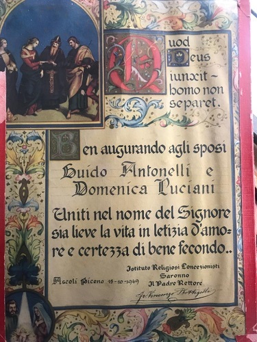 Con le nozze di diamante del prossimo 15 ottobre 2019 Guido e Luciana si riprometteranno fedeltà e amore eterno presso la Cattedrale di Ascoli Piceno domenica 20 ottobre alle ore 11:00 e seguiranno gli immancabili festeggiamenti con tutti i figli,nipoti ,pronipoti ed amici.