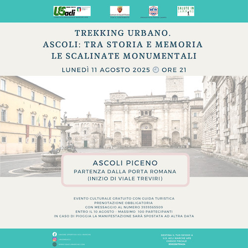 ASCOLI PICENO – Lunedì 11 agosto è in programma un nuovo appuntamento con le iniziative del progetto “Salute in cammino per la cultura”, curato da Unione Sportiva Acli Marche Aps.
