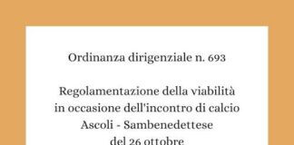 Una Ordinanza regola la viabilità in occasione dell'incontro di calcio Ascoli Calcio 1898 F.C. - U.S. Sambenedettese del 26...