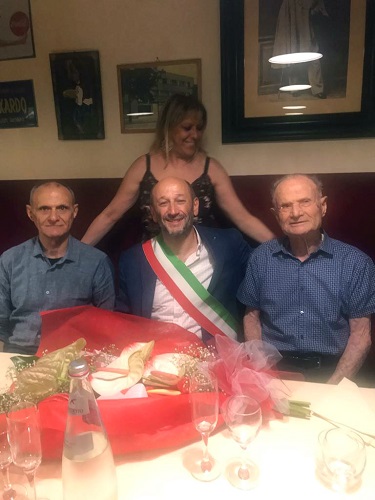 Nella foto da destra: il centenario Pietro Leonori, insieme all’assessore Narciso Ricotta, al figlio Pietro e alla sua compagna Lorella.