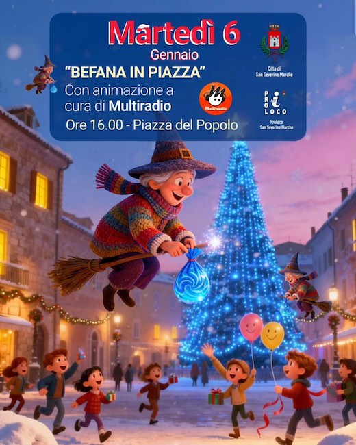 L’iniziativa, organizzata dal Comune in collaborazione con la Pro Loco, prevede un pomeriggio di grande divertimento con l’animazione a cura di Multiradio. Sarà un momento magico dedicato soprattutto ai bambini e alle famiglie, con musica, giochi e l’immancabile arrivo della vecchina più amata d’Italia.