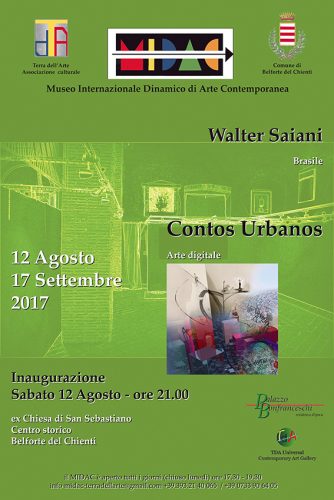 BELFORTE DEL CHIENTI (MC) – Ricordiamo a tutti gli appassionati d’arte che continua, presso l’ex Chiesa di San Sebastiano, sede del Museo MIDAC, centro storico di Belforte del Chienti, la mostra personale “Contos Urbanos” dell’artista brasiliano Walter Saiani (Brasile), curata da Terra dell’Arte con il patrocinio dell’Amministrazione Comunale.Per visitarla c’è tempo fino al prossimo 17 settembre.