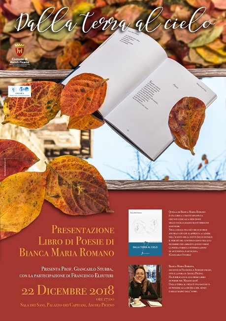 ASCOLI PICENO – Dalla Nuvola di Fuksas a Palazzo dei Capitani. Dal futurismo architettonico del Centro Congressi dell’Eur all’imponenza austera del medioevo ascolano. Per “Dalla terra al cielo”, il nuovo libro che la poetessa ascolana Bianca Maria Romano ha dedicato alle persone colpite dal sisma del 24 agosto 2016, sono due gli scenari che, seppur contrastanti tra loro, riescono a creare nel pubblico un forte impatto emotivo. Quello stesso carico di emozioni che suscita la lirica della Romano, in quel gioco fatto di luci ed ombre che ammanta tutti i suoi versi.