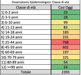 I dati odierni sulla diffusione del Coronavirus sono forniti dall’Osservatorio Epidemiologico Regionale – ARS: