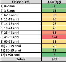 439 casi positivi rilevati su 3487 tamponi testati nel percorso nuove diagnosi di Covid 19. Sono 25 i ricoverati in intensiva, 92 in area medica. Un decesso