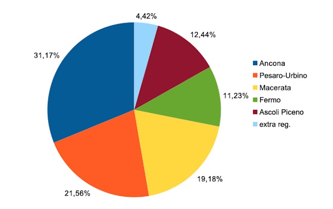 Del totale dei casi positivi 77.749 si riferiscono alla provincia di Ancona, 53.762 a quella di Pesaro-Urbino ,47.847 alla provincia di Macerata,28.020 a quella di Fermo, 31.022 a quella di Ascoli Piceno. Il servizio sanitario regionale delle Marche segue anche 11.037 casi fuori regione.