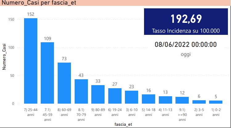 Il tasso di incidenza cumulativo su 100.000 abitanti oggi è 192,69(ieri 185,97).