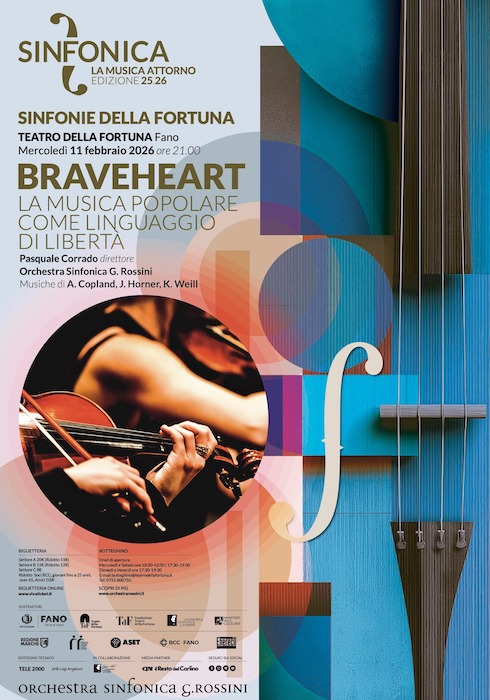 FANO – La musica come voce dei popoli, come memoria collettiva e come spazio di libertà: è questo il filo conduttore di “Braveheart”, il concerto che l’Orchestra Sinfonica G. Rossini propone mercoledì 11 febbraio 2026 alle ore 21.00 al Teatro della Fortuna di Fano, all’interno della Stagione Sinfonie della Fortuna 2026.