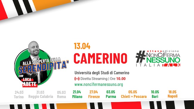 CAMERINO – Arriva per la prima volta all’Università di Camerino #NonCiFermaNessuno, il tour motivazionale universitario ideato da Luca Abete, l’inviato di Striscia La Notizia, giunto quest’anno alla sua ottava edizione.