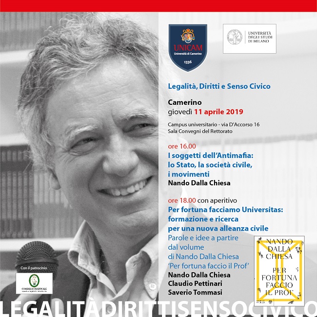 Alle ore 18, invece, il prof. Dalla Chiesa, il Rettore Unicam Claudio Pettinari ed il giornalista e scrittore Saverio Tommasi discuteranno insieme, prendendo spunto dal libro di Nando Dalla Chiesa “Per fortuna faccio il Prof”, di universitas, formazione e ricerca per una nuova alleanza civile.