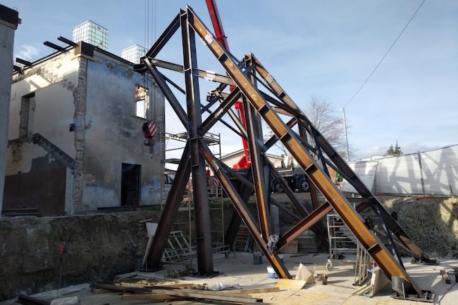 Sulle due porzioni di edifici così preparate sono state eseguite prove di caratterizzazione dinamica nonché, lo scorso 13 ed oggi 18 gennaio, prove push over fino al collasso, utilizzando una struttura di contrasto in acciaio che ha consentito di applicare delle forze ai due piani per simulare l’azione sismica orizzontale.