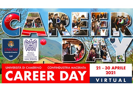 CAMERINO – Per il secondo anno consecutivo il Career Day dell’Università di Camerino sarà virtuale! Promosso anche per questa edizione in collaborazione con Confindustria Macerata, il più importante momento di incontro tra studenti e aziende si svolgerà in modalità interamente telematica dal 21 al 30 aprile. Nella mattinata della prima giornata si terrà un evento plenario con seminari per tutti gli studenti, mentre nei giorni successivi gli studenti potranno incontrare telematicamente le aziende.