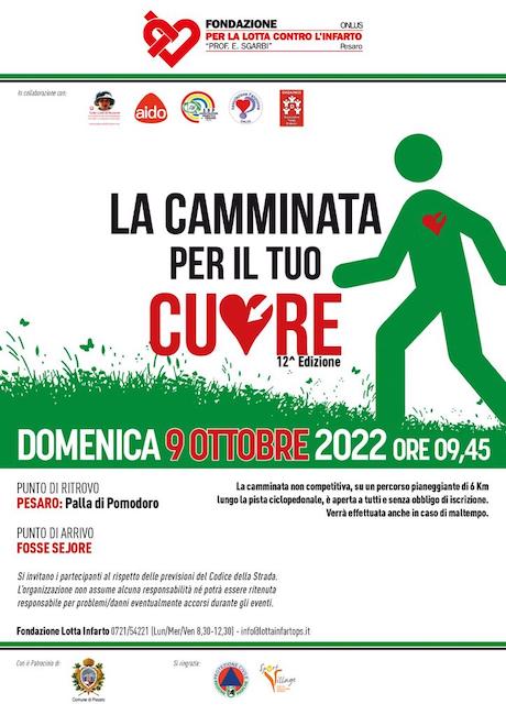PESARO – Torna domenica, con la XII edizione, “La camminata per il tuo cuore”, appuntamento gratuito, non competitivo, promosso dalla Fondazione per la lotta contro l’infarto in collaborazione con il Comune di Pesaro.