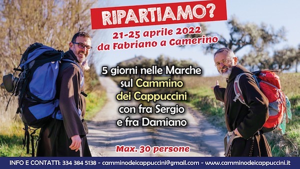 SAN SEVERINO MARCHE – Ben 17 tappe, per quasi 400 chilometri, da Fossombrone ad Ascoli Piceno, attraversando la dorsale interna degli Appennini. Domenica prossima (24 aprile) arriveranno in piazza Del Popolo, a San Severino Marche, i pellegrini che, provenienti da varie realtà delle Marche e d’Italia, si sono dati appuntamento per percorrere un tratto del famoso Cammino dei Cappuccini guidati dal Padre provinciale fra Sergio Lorenzini, settempedano con la passione delle passeggiate e dello stare insieme nei luoghi dove le comunità francescane hanno operato, e da fra Damiano.