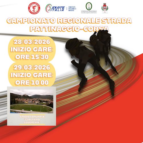 SAN SEVERINO MARCHE – Il grande sport su rotelle torna protagonista nel cuore della città di San Severino Marche. Sabato 28 e domenica 29 marzo, l’anello dello stadio comunale “Gualtiero Soverchia” si trasformerà nel palcoscenico del Campionato regionale strada di pattinaggio corsa, un appuntamento di altissimo livello agonistico che vedrà sfidarsi i migliori talenti delle Marche.