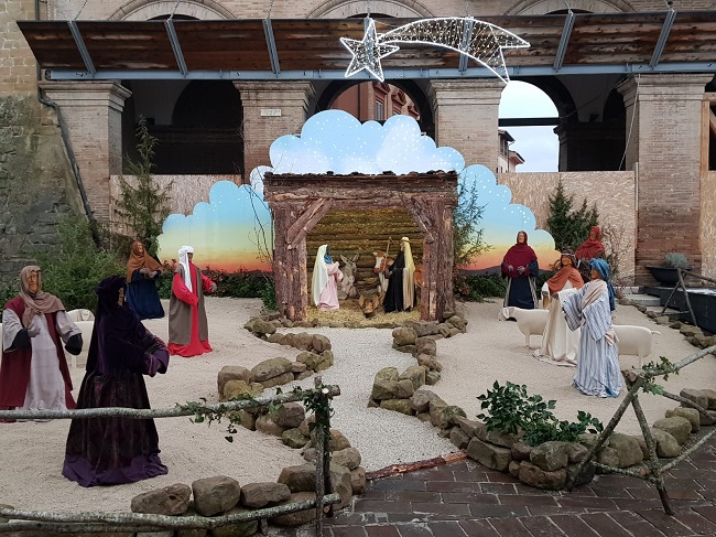 “Non abbiamo scelto di allestire il presepe in Piazza della Repubblica solo per l’atmosfera suggestiva della nostra piazza – ha spiegato il sindaco, Renzo Marinelli – ma lo abbiamo posizionato ai piedi del nostro monumento identitario e rappresentativo, la torre monumentale del Cassero e il Palazzo comunale, entrambi fortemente danneggiati dal terremoto. E così questo presepe, che simboleggia il momento della Natività, per noi assume un forte significato di luce e di speranza, soprattutto in questo momento difficile per tutto il nostro territorio. La speranza per il futuro delle nostre terre, che si possano rialzare con determinazione dopo i fatti drammatici che hanno messo in ginocchio tanti paesi, speranza che la ricostruzione, tanto agognata, possa partire realmente e concretamente con un reale cambio di passo nell’impostazione del sistema e delle procedure”.