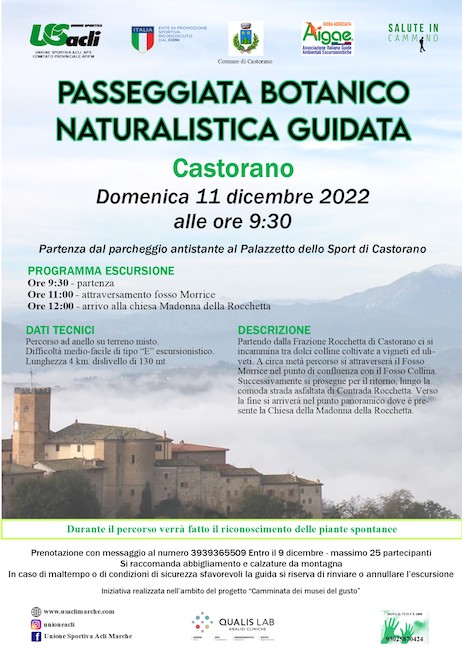 CASTORANO – E’ in programma per domenica 11 dicembre 2022, a Castorano, una passeggiata botanico naturalistica guidata.