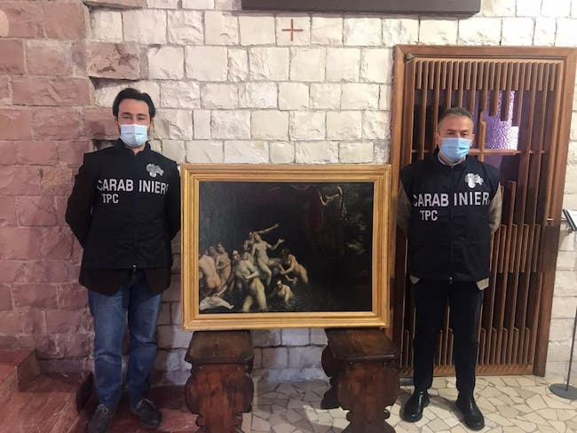 Il dipinto è comparso sul mercato antiquariale quando stava per essere battuto in vendita da una casa d’aste lombarda. I militari della Sezione Elaborazione Dati del Comando TPC, che quotidianamente monitorano centinaia di opere pubblicate in vari cataloghi di vendita, hanno comparato le immagini del bene in asta con quelle contenute nella “Banca dati dei beni culturali illecitamente sottratti” identificando l’opera. Per la sua importanza storico-culturale, il dipinto era inserito nel “bollettino” delle opere d’arte trafugate, pubblicazione annuale dal titolo “Arte in Ostaggio”, realizzata dal Comando TPC sin dal 1973, strumento fondamentale per contrastare il traffico illecito di opere d’arte.