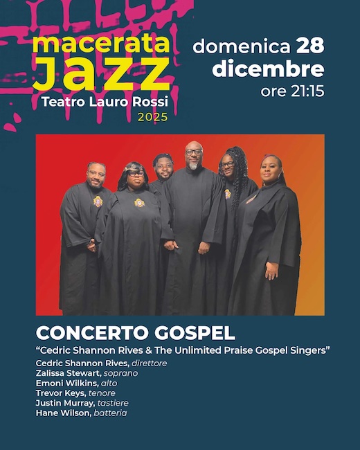 Domani, domenica 28 dicembre, alle ore 21.15, il Teatro Lauro Rossi accoglie una delle voci più carismatiche della scena gospel internazionale: Cedric Shannon Rives, accompagnato dagli Unlimited Praise Gospel Singers.