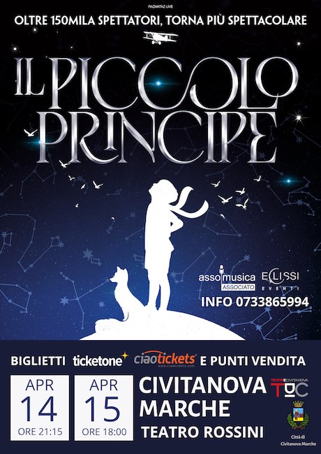 CIVITANOVA MARCHE – Lo show dei record “Il Piccolo Principe” approda al Teatro Rossini di Civitanova Marche il 14 e il 15 aprile 2026. Lo show firmato Razmataz Live è una rappresentazione unica nel suo genere, che si snoda attraverso gli innumerevoli linguaggi che la narrazione, la musica, il canto, la scenografia e, più in generale, la performance offrono. In equilibrio tra prosa, musical, nouveau cirque e installazione, ogni significato, ogni personaggio, ogni snodo della vicenda attinge al codice più adatto ad arrivare allo spettatore.