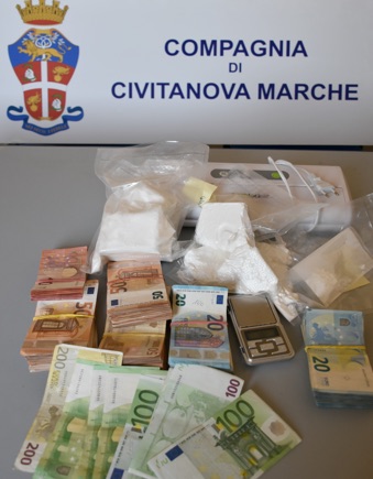 L’attività di ricerca ha consentito di recuperare nei cassetti anche la somma contanti di oltre diciottomila euro in banconote di vario taglio sicuro provento dell’attività di spaccio, bilancini di precisione, buste per sottovuoto ed attrezzatura per il confezionamento dello stupefacente.